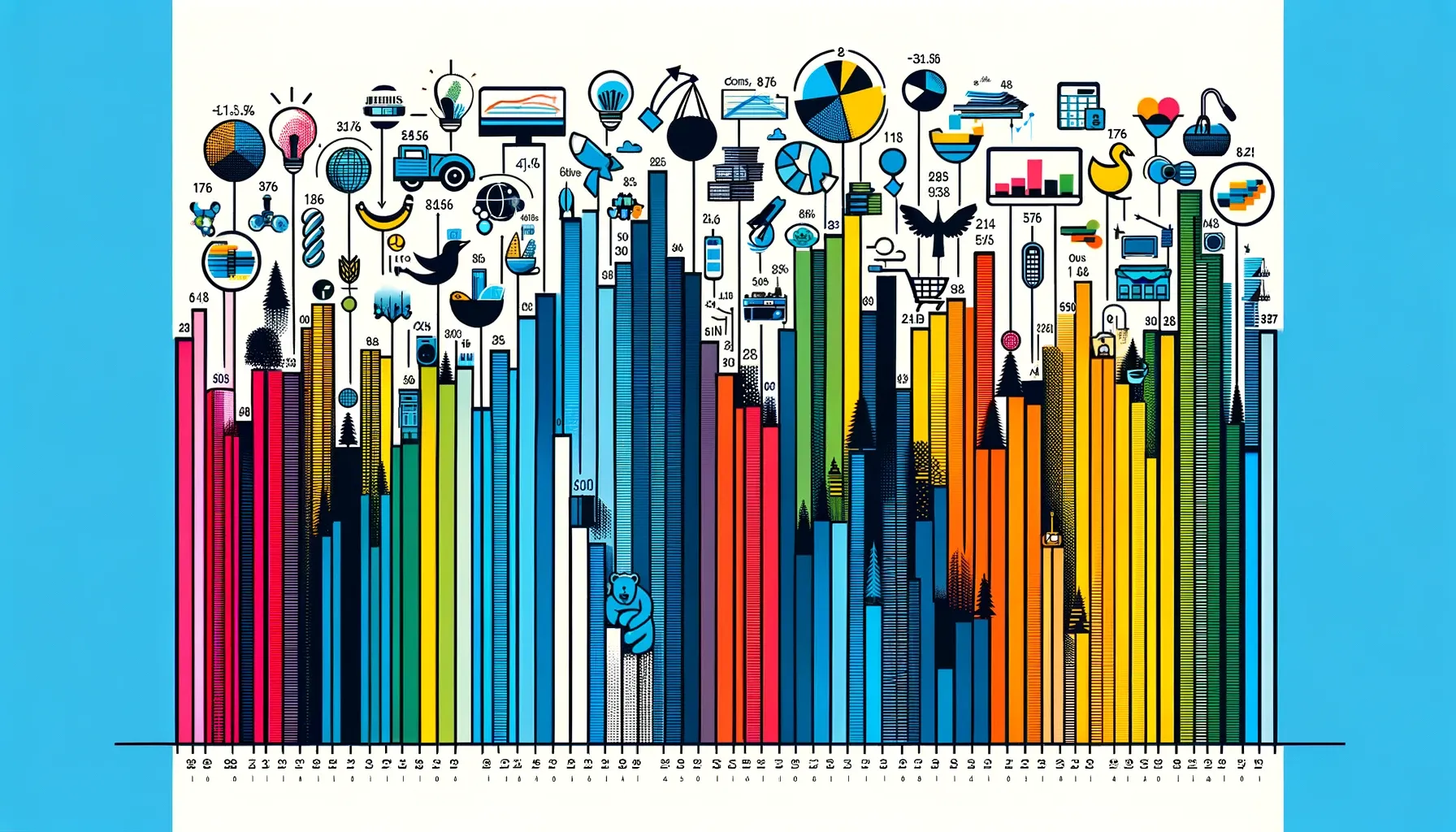 Élément visuel caractérisé par l’usage de barres verticales ou horizontales, le graphique à barres sert à comparer quantitativement des données entre différentes catégories.